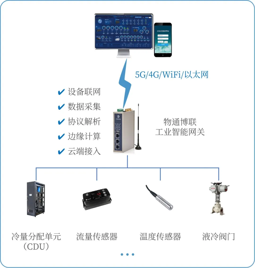 液冷系统核心设备冷量分配单元(CDU)型号多样、数量繁杂,不同厂家设备通信协议不兼容,导致设备状态、运行参数难以统一整合,缺乏可视化管控界面,管理人员无法快速查询、精准定位设备异常,运维调度效率低下。